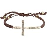 Heirloom Finds , We all know faith is dazzling and we have put it into jewelry! The gold tone cross is encrusted with clear crystals and attached to a very trendy brown macrame band. The cord bracelet will adjust from 6" to 8.5". The sideways cross measures 1 1/2" Long and 3/4" Wide. Your bracelet will arrive in a gift box ready to be given or to treasure yourself. ...