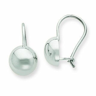 14k White Gold, 14k White Gold 8.00mm Hollow Half Ball Earrings (Kidney wire, Polished)